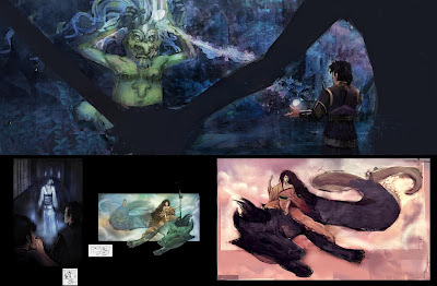 So here are my thumbnails.I took my sweet time with these, watching dramas, history channels, eating food and playing video games. My spring break was fun and I discovered that my neighbors are some guy who works at Pixar and some monks. The monks were awesome. One them is like a warrior monk and I'm totally gonna get him to pose for me muahahahaha. I got around to be active as well, which I think I should make a part of my daily routine and not be lazy. I think doing thumbnail is like the super fun part of making an illustration or coming up with a concept. I like doing my thumbnails in pen and ink, helps you see the big shape and design you come with around it. fun fun fun! Anyways here the 100 thumbnails and then their variations.